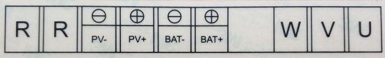 [PV- PV+]-----太阳能电池板输入端,注意接线极性